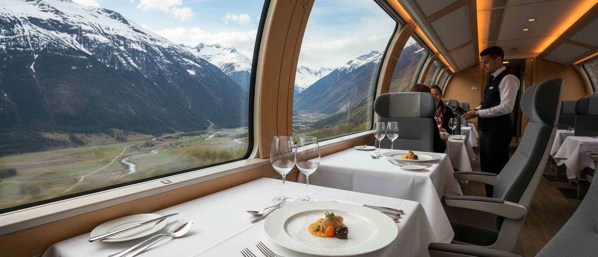 Perhaps the most legendary train in the world, the Venice Simplon-Orient-Express evokes the glamour of the 1920s and 1930s. Polished wood interiors, Art Deco details, and white-glove service create an unforgettable atmosphere.