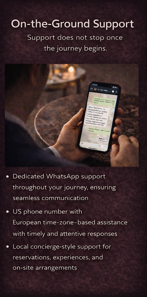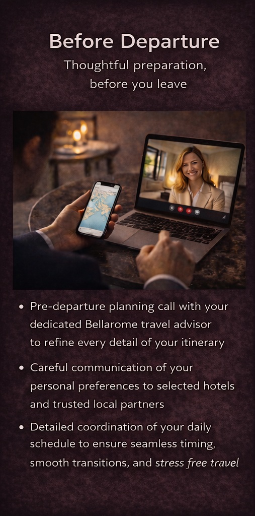 Every Bellarome Travel Worldwide journey is shaped by thoughtful planning, continuity, personal attention, and our exclusive BELLAROME PRIVILEGES, ensuring that each trip is carefully prepared before departure and consistently supported throughout the experience.